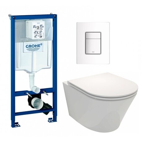 Хотите современный туалет, который экономит воду и прост в уходе? Этот комплект от Grohe решает обе задачи: безободковая чаша экономит 1 литр воды при каждом смыве, а гладкая поверхность чистится за 2 минуты без специальных средств. Три главных преимущества: - Двухрежимный смыв — 3 литра для малого слива и 6 для полного. Семья из трех человек экономит до 15 000 литров воды в год - Безободковая конструкция — под ободком не скапливается грязь и бактерии. Система антивсплеск защищает от брызг - Механизм старт-стоп — прерываете смыв в любой момент одним нажатием, используете ровно столько воды, сколько нужно Подходит для санузлов от 3 м². Комплект занимает 50 × 52 см площади пола, чаша крепится на высоте 35 см — удобно для взрослых и детей от 7 лет. Монтируется в капитальную стену или по углам в пол. Монтажная глубина — 23 см — инсталляция помещается даже в тонкие перегородки из гипсокартона. Сиденье из дюропласта закрывается бесшумно благодаря микролифту — не нужно придерживать крышку рукой. Материал не желтеет и выдерживает вес до 150 кг. Каскадный слив — вода омывает чашу равномерно по всей поверхности, не оставляя следов. Белая керамика покрыта водоотталкивающей глазурью — капли скатываются сами, не образуя известковый налет. Технические характеристики: - Гарантия 5 лет — производитель обслуживает и меняет детали бесплатно - Вес 43 кг — устанавливается за 3 часа без усиления стены - Подвод воды сбоку или сзади — адаптируется под любую раскладку труб - Межосевое расстояние 18 см — стандарт для всех современных унитазов - Белая кнопка из пластика — легко моется и не царапается Комплект поставляется готовым к установке — не нужно докупать крепления или переходники.Отзывы